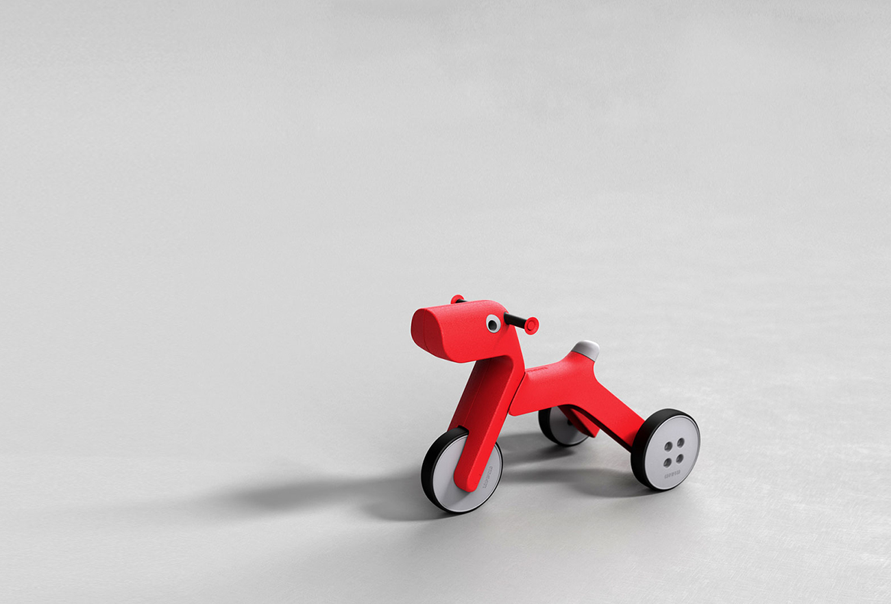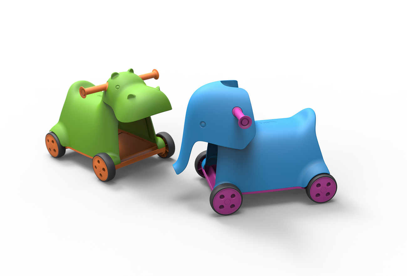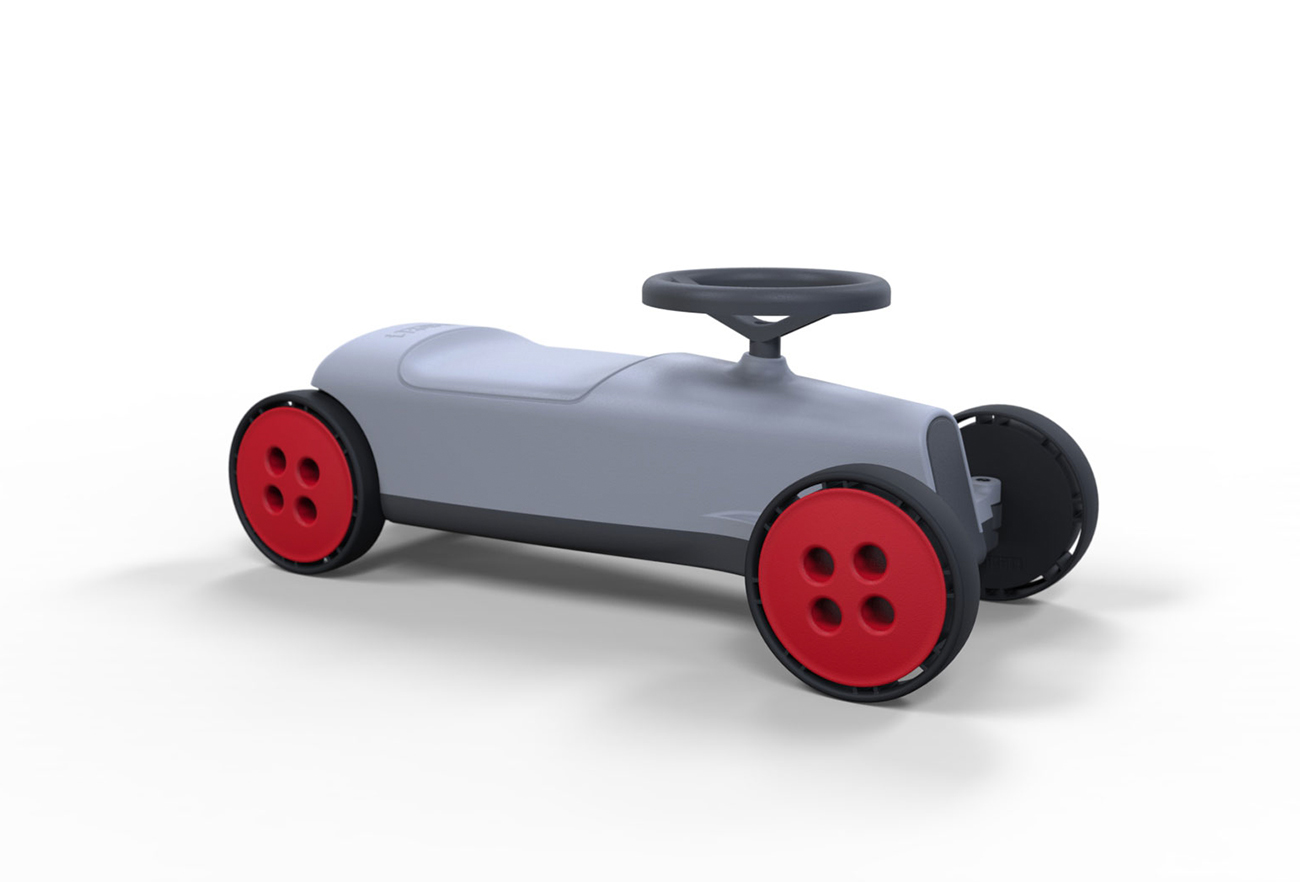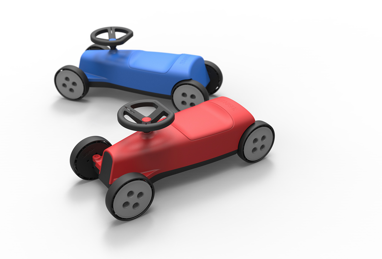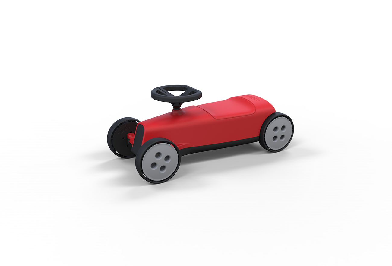 The toy’s unique design allows us to present a tricycle with no internal frame, but more importantly, the innovative axis design gives the product a complete, seamless appearance.